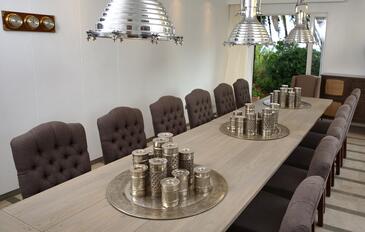 Casa può accogliere 12 ospiti. I letti sono disposti nelle camere da letto che sono 8, su 333m2. Gli ospiti hanno a disposizione il proprio terrazzo per godere nelle calde serate estive. Per il piacere totale e il relax c'è il barbecue privato solo per gli ospiti di quest'alloggio. Durante il soggiorno gli ospiti si possono rilassare nella piscina privata. Arrivati nell'unità d'alloggio i clienti devono pagare un deposito (il prezzo è indicato sul sito).