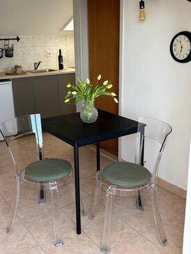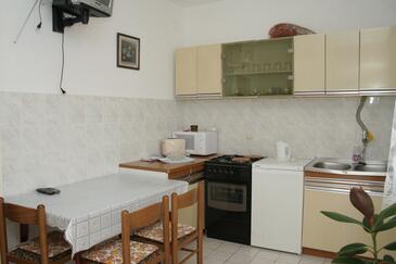 Appartamento può accogliere 7 ospiti. I letti sono disposti nelle camere da letto che sono 3, su 64m2. Gli ospiti hanno a disposizione il proprio terrazzo per godere nelle calde serate estive. Dall'appartamento si gode di una vista sul mare. Si può preparare il cibo utilizzando il barbecue comune.