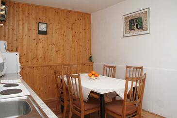 Appartamento può accogliere 7 ospiti. I letti sono disposti nelle camere da letto che sono 3, su 64m2. Gli ospiti hanno a disposizione il proprio terrazzo per godere nelle calde serate estive. Dall'appartamento si gode di una vista sul mare. Si può preparare il cibo utilizzando il barbecue comune.
