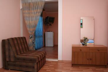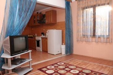 Appartamento può accogliere 5 ospiti. I letti sono disposti nelle camere da letto che sono 1, e nella camera di soggiorno, su 50m2. Gli ospiti hanno a disposizione il proprio terrazzo per godere nelle calde serate estive. Si può preparare il cibo utilizzando il barbecue comune. Nell'unità di alloggio si possono portare gli animali domestici con un pagamento supplementare.