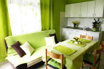 Appartamento può accogliere 5 ospiti. I letti sono disposti nelle camere da letto che sono 2, su 48m2. Gli ospiti hanno a disposizione il proprio balcone per godere delle calde serate estive. Dall'appartamento si gode di una vista sul mare. Si può preparare il cibo utilizzando il barbecue comune. Nell'unità di alloggio si possono portare gli animali domestici senza alcun pagamento supplementare.