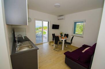 Appartamento può accogliere 4 ospiti. I letti sono disposti nelle camere da letto che sono 1, e nella camera di soggiorno, su 40m2. Gli ospiti hanno a disposizione il proprio terrazzo per godere nelle calde serate estive. Dall'appartamento si gode di una vista sul mare. Per il piacere totale e il relax c'è il barbecue privato solo per gli ospiti di quest'alloggio.