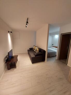 Appartamento può accogliere 6 ospiti. I letti sono disposti nelle camere da letto che sono 2, su 55m2. Gli ospiti hanno a disposizione il proprio terrazzo per godere nelle calde serate estive. Le stanze dell'unità d'alloggio non sono connesse in un insieme. L'unità d'alloggio ha delle stanze separate dal resto dell'unità.
