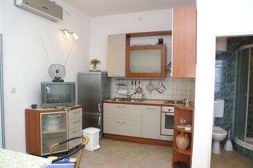 Monolocale può accogliere 2 ospiti. I letti sono disposti nelle camere da letto che sono 1, su 21m2. Gli ospiti hanno a disposizione il proprio terrazzo per godere nelle calde serate estive. Dal monolocale si gode di una vista sul mare. Nell'unità di alloggio si possono portare gli animali domestici con un pagamento supplementare.