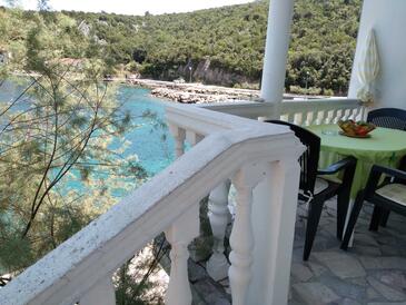 Appartamento può accogliere 7 ospiti. I letti sono disposti nelle camere da letto che sono 3, su 62m2. Gli ospiti hanno a disposizione il proprio terrazzo per godere nelle calde serate estive. Dall'appartamento si gode di una vista sul mare. Si può preparare il cibo utilizzando il barbecue comune.