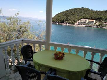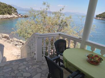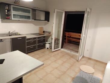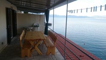 Appartamento può accogliere 7 ospiti. I letti sono disposti nelle camere da letto che sono 3, su 62m2. Gli ospiti hanno a disposizione il proprio terrazzo per godere nelle calde serate estive. Dall'appartamento si gode di una vista sul mare. Si può preparare il cibo utilizzando il barbecue comune.