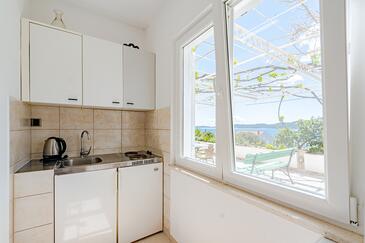 Appartamento può accogliere 4 ospiti. I letti sono disposti nelle camere da letto che sono 2, su 47m2. Gli ospiti hanno a disposizione il proprio terrazzo per godere nelle calde serate estive. Dall'appartamento si gode di una vista sul mare. Si può preparare il cibo utilizzando il barbecue comune.
