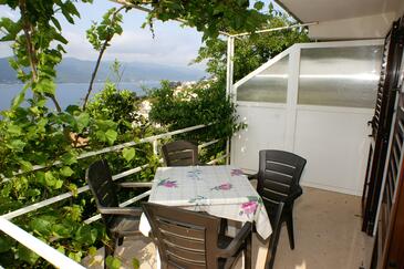 Appartamento può accogliere 4 ospiti. I letti sono disposti nelle camere da letto che sono 2, su 33m2. Gli ospiti hanno a disposizione il proprio terrazzo per godere nelle calde serate estive. Dall'appartamento si gode di una vista sul mare. Si può preparare il cibo utilizzando il barbecue comune. Durante il soggiorno gli ospiti possono utilizzare la piscina comune. Nell'unità di alloggio si possono portare gli animali domestici con un pagamento supplementare.