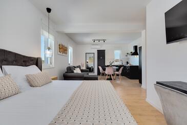 Monolocale può accogliere 2 ospiti. I letti sono disposti nelle camere da letto che sono 1, su 40m2. Gli ospiti hanno a disposizione il proprio terrazzo per godere nelle calde serate estive. Le stanze dell'unità d'alloggio non sono connesse in un insieme.