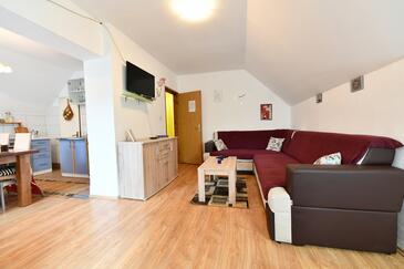 Appartamento può accogliere 5 ospiti. I letti sono disposti nelle camere da letto che sono 2, su 54m2. Gli ospiti hanno a disposizione il proprio terrazzo per godere nelle calde serate estive. Si può preparare il cibo utilizzando il barbecue comune. Nell'unità di alloggio si possono portare gli animali domestici senza alcun pagamento supplementare.