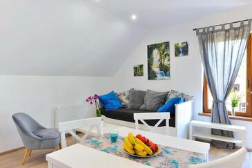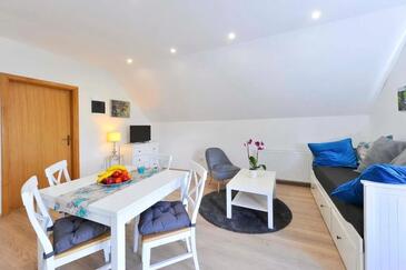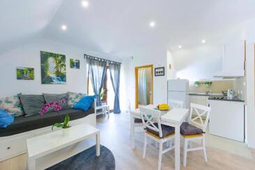 Appartamento può accogliere 5 ospiti. I letti sono disposti nelle camere da letto che sono 2, e nella camera di soggiorno, su 49m2. Gli ospiti hanno a disposizione il proprio terrazzo per godere nelle calde serate estive. Si può preparare il cibo utilizzando il barbecue comune. Nell'unità di alloggio si possono portare gli animali domestici con un pagamento supplementare.