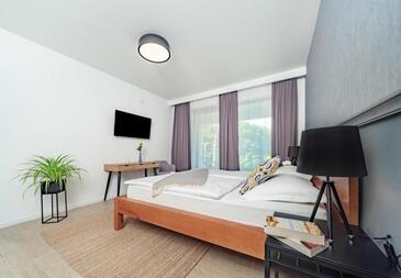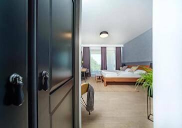 Camera può accogliere 2 ospiti. I letti sono disposti nelle camere da letto che sono 1, su 31m2. Gli ospiti hanno a disposizione il proprio balcone per godere delle calde serate estive. L'unità di alloggio prenotata è una camera con bagno proprio senza possibilità d'utilizzo della cucina.