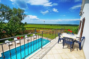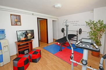 Casa può accogliere 8 ospiti. I letti sono disposti nelle camere da letto che sono 4, su 167m2. Gli ospiti hanno a disposizione il proprio terrazzo per godere nelle calde serate estive. Dalla casa si gode di una vista sul mare. Per il piacere totale e il relax c'è il barbecue privato solo per gli ospiti di quest'alloggio. Durante il soggiorno gli ospiti si possono rilassare nella piscina privata. Nell'unità di alloggio si possono portare gli animali domestici con un pagamento supplementare. Arrivati nell'unità d'alloggio i clienti devono pagare un deposito (il prezzo è indicato sul sito).