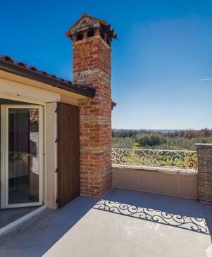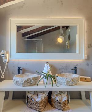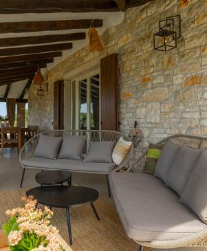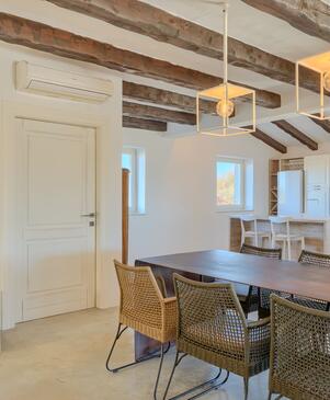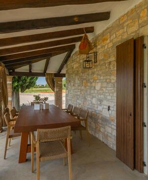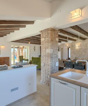 Casa può accogliere 8 ospiti. I letti sono disposti nelle camere da letto che sono 3, e nella camera di soggiorno, su 165m2. Gli ospiti hanno a disposizione il proprio terrazzo per godere nelle calde serate estive. Per il piacere totale e il relax c'è il barbecue privato solo per gli ospiti di quest'alloggio. Durante il soggiorno gli ospiti possono utilizzare la piscina comune. Arrivati nell'unità d'alloggio i clienti devono pagare un deposito (il prezzo è indicato sul sito).