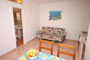 Appartamento può accogliere 6 ospiti. I letti sono disposti nelle camere da letto che sono 2, e nella sala da pranzo, su 50m2. Gli ospiti hanno a disposizione il proprio terrazzo per godere nelle calde serate estive. Dall'appartamento si gode di una vista sul mare. Si può preparare il cibo utilizzando il barbecue comune. Nell'unità di alloggio si possono portare gli animali domestici con un pagamento supplementare.