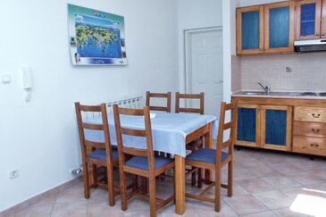 Appartamento può accogliere 6 ospiti. I letti sono disposti nelle camere da letto che sono 2, e nella sala da pranzo, su 50m2. Gli ospiti hanno a disposizione il proprio terrazzo per godere nelle calde serate estive. Dall'appartamento si gode di una vista sul mare. Si può preparare il cibo utilizzando il barbecue comune. Nell'unità di alloggio si possono portare gli animali domestici con un pagamento supplementare.