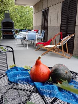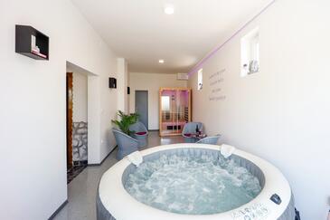 Casa può accogliere 4 ospiti. I letti sono disposti nelle camere da letto che sono 2, su 108m2. Gli ospiti hanno a disposizione il proprio terrazzo per godere nelle calde serate estive. Per il piacere totale e il relax c'è il barbecue privato solo per gli ospiti di quest'alloggio. Nell'unità di alloggio si possono portare gli animali domestici senza alcun pagamento supplementare.