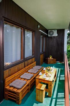 Casa può accogliere 4 ospiti. I letti sono disposti nelle camere da letto che sono 2, su 108m2. Gli ospiti hanno a disposizione il proprio terrazzo per godere nelle calde serate estive. Per il piacere totale e il relax c'è il barbecue privato solo per gli ospiti di quest'alloggio. Nell'unità di alloggio si possono portare gli animali domestici senza alcun pagamento supplementare.