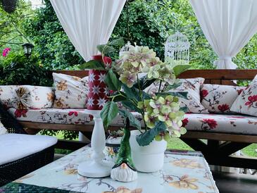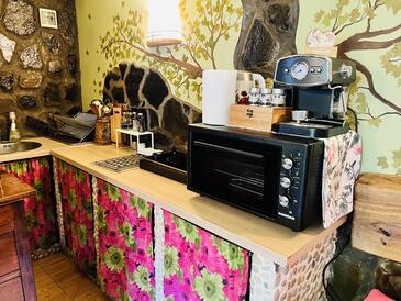 Casa può accogliere 6 ospiti. I letti sono disposti nelle camere da letto che sono 2, su 41m2. Gli ospiti hanno a disposizione il proprio terrazzo per godere nelle calde serate estive. Per il piacere totale e il relax c'è il barbecue privato solo per gli ospiti di quest'alloggio. Nell'unità di alloggio si possono portare gli animali domestici con un pagamento supplementare.