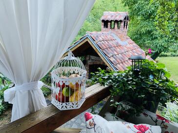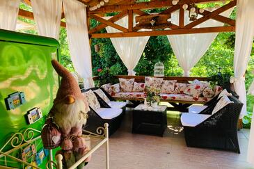 Casa può accogliere 6 ospiti. I letti sono disposti nelle camere da letto che sono 2, su 41m2. Gli ospiti hanno a disposizione il proprio terrazzo per godere nelle calde serate estive. Per il piacere totale e il relax c'è il barbecue privato solo per gli ospiti di quest'alloggio. Nell'unità di alloggio si possono portare gli animali domestici con un pagamento supplementare.