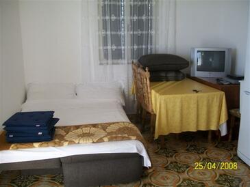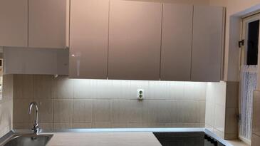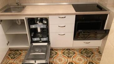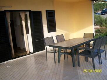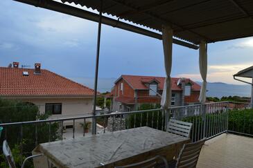 Appartamento può accogliere 6 ospiti. I letti sono disposti nelle camere da letto che sono 2, e nella sala da pranzo, su 34m2. Gli ospiti hanno a disposizione il proprio terrazzo per godere nelle calde serate estive. Dall'appartamento si gode di una vista sul mare. Si può preparare il cibo utilizzando il barbecue comune.