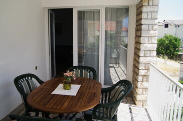 Appartamento può accogliere 4 ospiti. I letti sono disposti nelle camere da letto che sono 2, su 67m2. Gli ospiti hanno a disposizione il proprio terrazzo per godere nelle calde serate estive. Dall'appartamento si gode di una vista sul mare. Si può preparare il cibo utilizzando il barbecue comune.