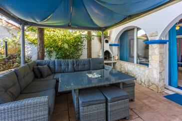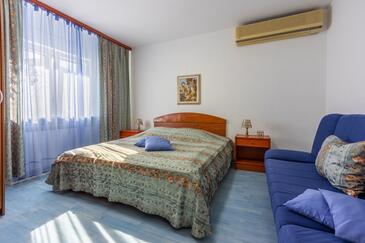 Appartamento può accogliere 6 ospiti. I letti sono disposti nelle camere da letto che sono 2, su 43m2. Gli ospiti hanno a disposizione il proprio terrazzo per godere nelle calde serate estive. Per il piacere totale e il relax c'è il barbecue privato solo per gli ospiti di quest'alloggio. Nell'unità di alloggio si possono portare gli animali domestici con un pagamento supplementare. Arrivati nell'unità d'alloggio i clienti devono pagare un deposito (il prezzo è indicato sul sito).