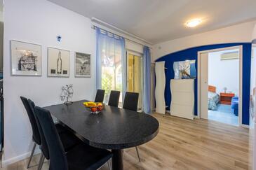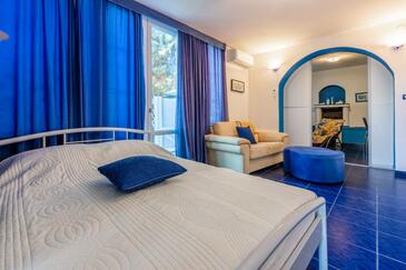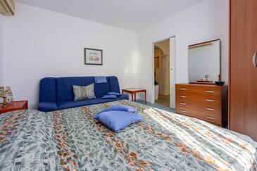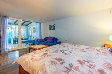 Appartamento può accogliere 6 ospiti. I letti sono disposti nelle camere da letto che sono 2, su 43m2. Gli ospiti hanno a disposizione il proprio terrazzo per godere nelle calde serate estive. Per il piacere totale e il relax c'è il barbecue privato solo per gli ospiti di quest'alloggio. Nell'unità di alloggio si possono portare gli animali domestici con un pagamento supplementare. Arrivati nell'unità d'alloggio i clienti devono pagare un deposito (il prezzo è indicato sul sito).