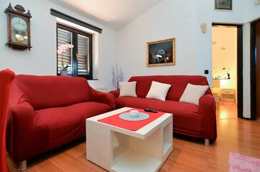Appartamento può accogliere 6 ospiti. I letti sono disposti nelle camere da letto che sono 3, su 57m2. Gli ospiti hanno a disposizione il proprio terrazzo per godere nelle calde serate estive. Si può preparare il cibo utilizzando il barbecue comune.