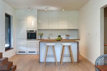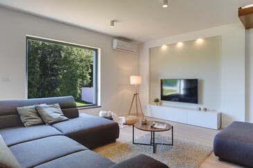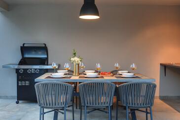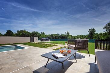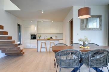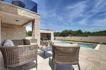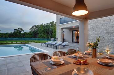 Casa può accogliere 6 ospiti. I letti sono disposti nelle camere da letto che sono 3, su 135m2. Gli ospiti hanno a disposizione il proprio terrazzo per godere nelle calde serate estive. Per il piacere totale e il relax c'è il barbecue privato solo per gli ospiti di quest'alloggio. Durante il soggiorno gli ospiti si possono rilassare nella piscina privata. Arrivati nell'unità d'alloggio i clienti devono pagare un deposito (il prezzo è indicato sul sito).