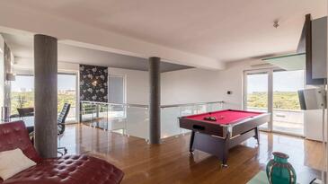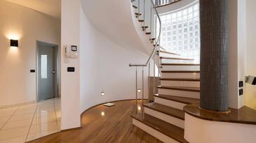 Casa può accogliere 10 ospiti. I letti sono disposti nelle camere da letto che sono 5, su 257m2. Gli ospiti hanno a disposizione il proprio balcone per godere delle calde serate estive. Dalla casa si gode di una vista sul mare. Per il piacere totale e il relax c'è il barbecue privato solo per gli ospiti di quest'alloggio. Durante il soggiorno gli ospiti si possono rilassare nella piscina privata. Nell'unità di alloggio si possono portare gli animali domestici con un pagamento supplementare. Arrivati nell'unità d'alloggio i clienti devono pagare un deposito (il prezzo è indicato sul sito).