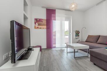 Appartamento può accogliere 4 ospiti. I letti sono disposti nelle camere da letto che sono 2, su 97m2. Gli ospiti hanno a disposizione il proprio terrazzo per godere nelle calde serate estive. Per il piacere totale e il relax c'è il barbecue privato solo per gli ospiti di quest'alloggio. Durante il soggiorno gli ospiti si possono rilassare nella piscina privata. Arrivati nell'unità d'alloggio i clienti devono pagare un deposito (il prezzo è indicato sul sito).