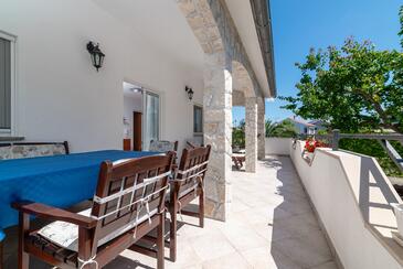 Appartamento può accogliere 4 ospiti. I letti sono disposti nelle camere da letto che sono 2, su 39m2. Gli ospiti hanno a disposizione il proprio terrazzo per godere nelle calde serate estive. Si può preparare il cibo utilizzando il barbecue comune.