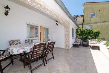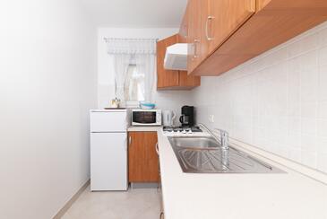 Appartamento può accogliere 4 ospiti. I letti sono disposti nelle camere da letto che sono 2, su 39m2. Gli ospiti hanno a disposizione il proprio terrazzo per godere nelle calde serate estive. Si può preparare il cibo utilizzando il barbecue comune.