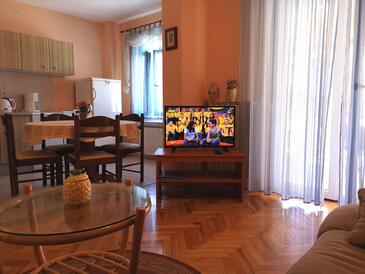 Appartamento può accogliere 5 ospiti. I letti sono disposti nelle camere da letto che sono 2, e nella camera di soggiorno, su 97m2. Gli ospiti hanno a disposizione il proprio terrazzo per godere nelle calde serate estive. Si può preparare il cibo utilizzando il barbecue comune. Durante il soggiorno gli ospiti possono utilizzare la piscina comune. Nell'unità di alloggio si possono portare gli animali domestici con un pagamento supplementare. Arrivati nell'unità d'alloggio i clienti devono pagare un deposito (il prezzo è indicato sul sito).