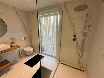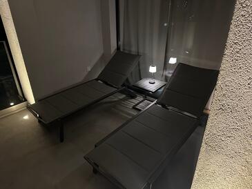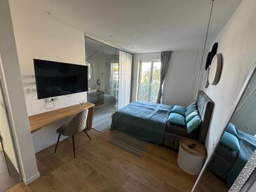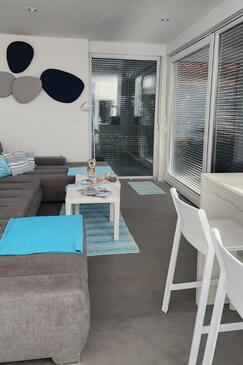 Appartamento può accogliere 6 ospiti. I letti sono disposti nelle camere da letto che sono 3, su 74m2. Gli ospiti hanno a disposizione il proprio terrazzo per godere nelle calde serate estive. Dall'appartamento si gode di una vista sul mare. Per il piacere totale e il relax c'è il barbecue privato solo per gli ospiti di quest'alloggio. Nell'unità di alloggio si possono portare gli animali domestici con un pagamento supplementare.