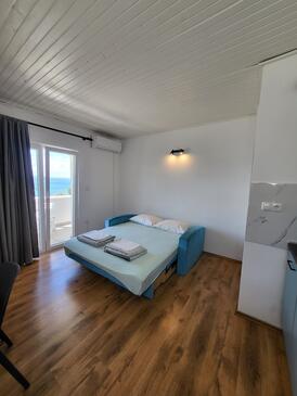 Appartamento può accogliere 3 ospiti. I letti sono disposti nelle camere da letto che sono 1, e nella camera di soggiorno, su 37m2. Gli ospiti hanno a disposizione il proprio terrazzo per godere nelle calde serate estive. Dall'appartamento si gode di una vista sul mare. Si può preparare il cibo utilizzando il barbecue comune. Nell'unità di alloggio si possono portare gli animali domestici con un pagamento supplementare.
