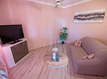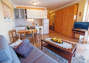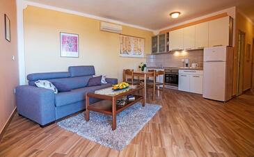 Appartamento può accogliere 6 ospiti. I letti sono disposti nelle camere da letto che sono 2, e nella camera di soggiorno, su 67m2. Gli ospiti hanno a disposizione il proprio terrazzo per godere nelle calde serate estive. Dall'appartamento si gode di una vista sul mare. Si può preparare il cibo utilizzando il barbecue comune. Durante il soggiorno gli ospiti possono utilizzare la piscina comune.