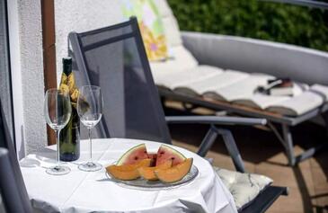 Appartamento può accogliere 3 ospiti. I letti sono disposti nelle camere da letto che sono 1, e nella camera di soggiorno, su 40m2. Gli ospiti hanno a disposizione il proprio terrazzo per godere nelle calde serate estive. Dall'appartamento si gode di una vista sul mare. Si può preparare il cibo utilizzando il barbecue comune. Nell'unità di alloggio si possono portare gli animali domestici con un pagamento supplementare.