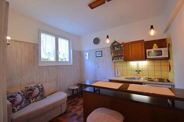 Monolocale può accogliere 4 ospiti. I letti sono disposti nelle camere da letto che sono 2, su 38m2. Gli ospiti hanno a disposizione il proprio terrazzo per godere nelle calde serate estive. Si può preparare il cibo utilizzando il barbecue comune.