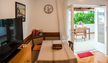 Appartamento può accogliere 4 ospiti. I letti sono disposti nelle camere da letto che sono 2, su 59m2. Gli ospiti hanno a disposizione il proprio terrazzo per godere nelle calde serate estive. Dall'appartamento si gode di una vista sul mare. Si può preparare il cibo utilizzando il barbecue comune. Nell'unità di alloggio si possono portare gli animali domestici con un pagamento supplementare.