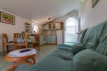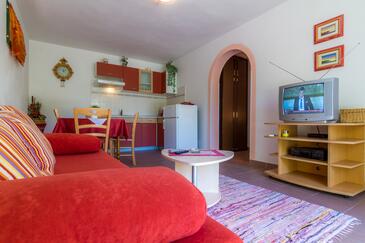 Appartamento può accogliere 5 ospiti. I letti sono disposti nelle camere da letto che sono 2, su 56m2. Gli ospiti hanno a disposizione il proprio terrazzo per godere nelle calde serate estive. Dall'appartamento si gode di una vista sul mare. Si può preparare il cibo utilizzando il barbecue comune.