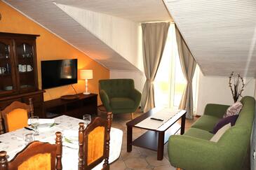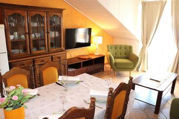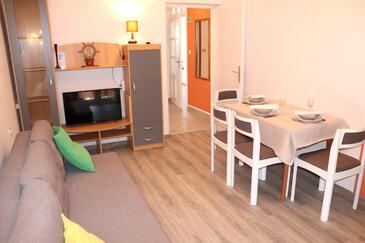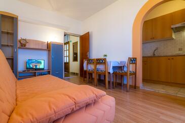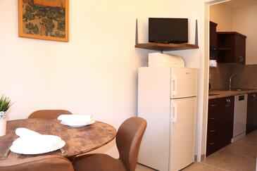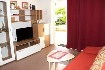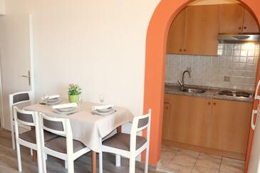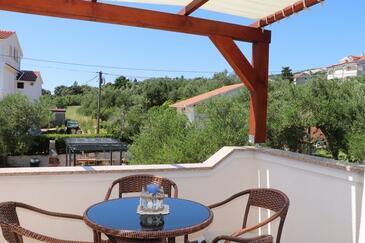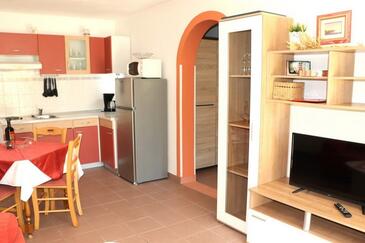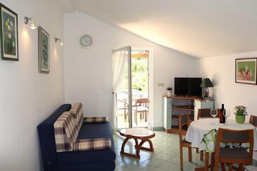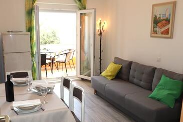 Appartamento può accogliere 5 ospiti. I letti sono disposti nelle camere da letto che sono 2, su 56m2. Gli ospiti hanno a disposizione il proprio terrazzo per godere nelle calde serate estive. Dall'appartamento si gode di una vista sul mare. Si può preparare il cibo utilizzando il barbecue comune.