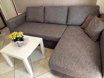 Appartamento può accogliere 4 ospiti. I letti sono disposti nelle camere da letto che sono 2, su 52m2. Gli ospiti hanno a disposizione il proprio terrazzo per godere nelle calde serate estive. Dall'appartamento si gode di una vista sul mare. Si può preparare il cibo utilizzando il barbecue comune. Arrivati nell'unità d'alloggio i clienti devono pagare un deposito (il prezzo è indicato sul sito).