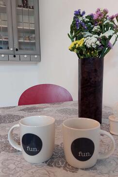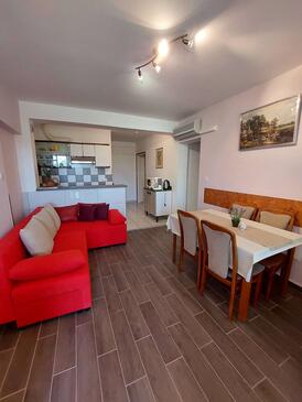 Appartamento può accogliere 4 ospiti. I letti sono disposti nelle camere da letto che sono 2, su 52m2. Gli ospiti hanno a disposizione il proprio terrazzo per godere nelle calde serate estive. Dall'appartamento si gode di una vista sul mare. Si può preparare il cibo utilizzando il barbecue comune. Arrivati nell'unità d'alloggio i clienti devono pagare un deposito (il prezzo è indicato sul sito).