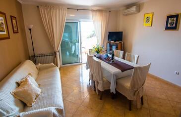 Appartamento può accogliere 6 ospiti. I letti sono disposti nelle camere da letto che sono 3, su 75m2. Gli ospiti hanno a disposizione il proprio terrazzo per godere nelle calde serate estive. Dall'appartamento si gode di una vista sul mare. Si può preparare il cibo utilizzando il barbecue comune.