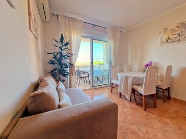 Appartamento può accogliere 6 ospiti. I letti sono disposti nelle camere da letto che sono 3, su 75m2. Gli ospiti hanno a disposizione il proprio terrazzo per godere nelle calde serate estive. Dall'appartamento si gode di una vista sul mare. Si può preparare il cibo utilizzando il barbecue comune.