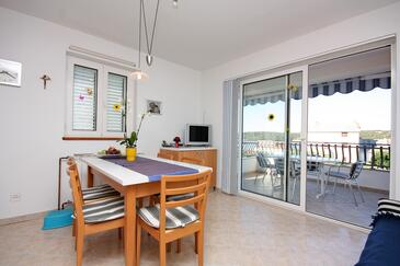 Appartamento può accogliere 4 ospiti. I letti sono disposti nelle camere da letto che sono 2, su 50m2. Gli ospiti hanno a disposizione il proprio terrazzo per godere nelle calde serate estive. Dall'appartamento si gode di una vista sul mare. Si può preparare il cibo utilizzando il barbecue comune.