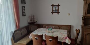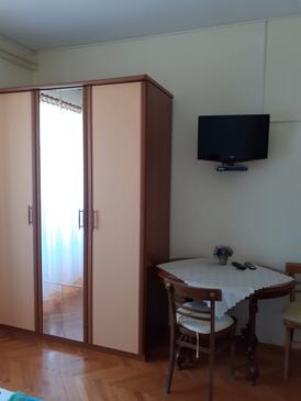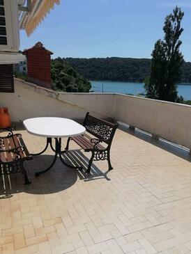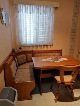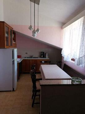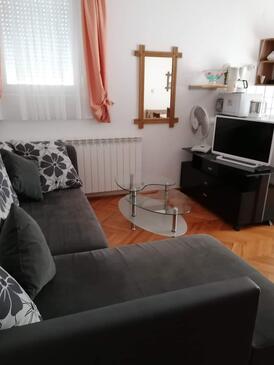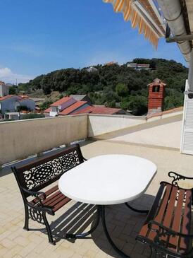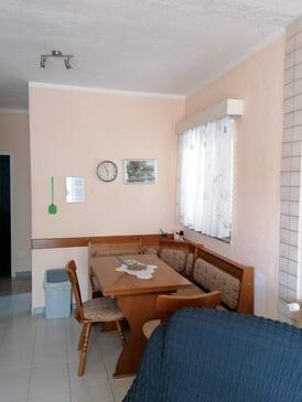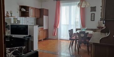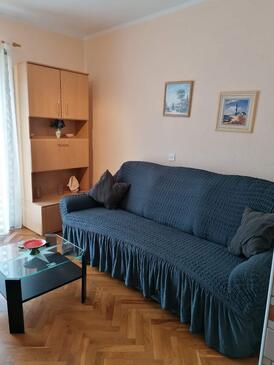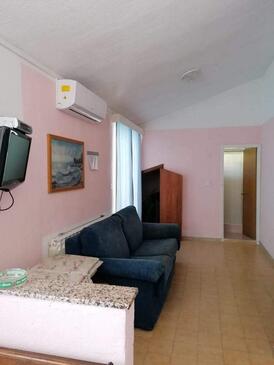 Appartamento può accogliere 6 ospiti. I letti sono disposti nelle camere da letto che sono 2, su 56m2. Gli ospiti hanno a disposizione il proprio terrazzo per godere nelle calde serate estive. Dall'appartamento si gode di una vista sul mare. Nell'unità di alloggio si possono portare gli animali domestici con un pagamento supplementare. Arrivati nell'unità d'alloggio i clienti devono pagare un deposito (il prezzo è indicato sul sito).