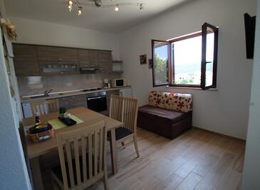 Appartamento può accogliere 5 ospiti. I letti sono disposti nelle camere da letto che sono 2, e nella sala da pranzo, su 49m2. Gli ospiti hanno a disposizione il proprio terrazzo per godere nelle calde serate estive. Dall'appartamento si gode di una vista sul mare. Si può preparare il cibo utilizzando il barbecue comune. Durante il soggiorno gli ospiti possono utilizzare la piscina comune. Nell'unità di alloggio si possono portare gli animali domestici con un pagamento supplementare.